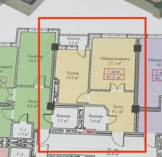 📐 Площадь —45 м²