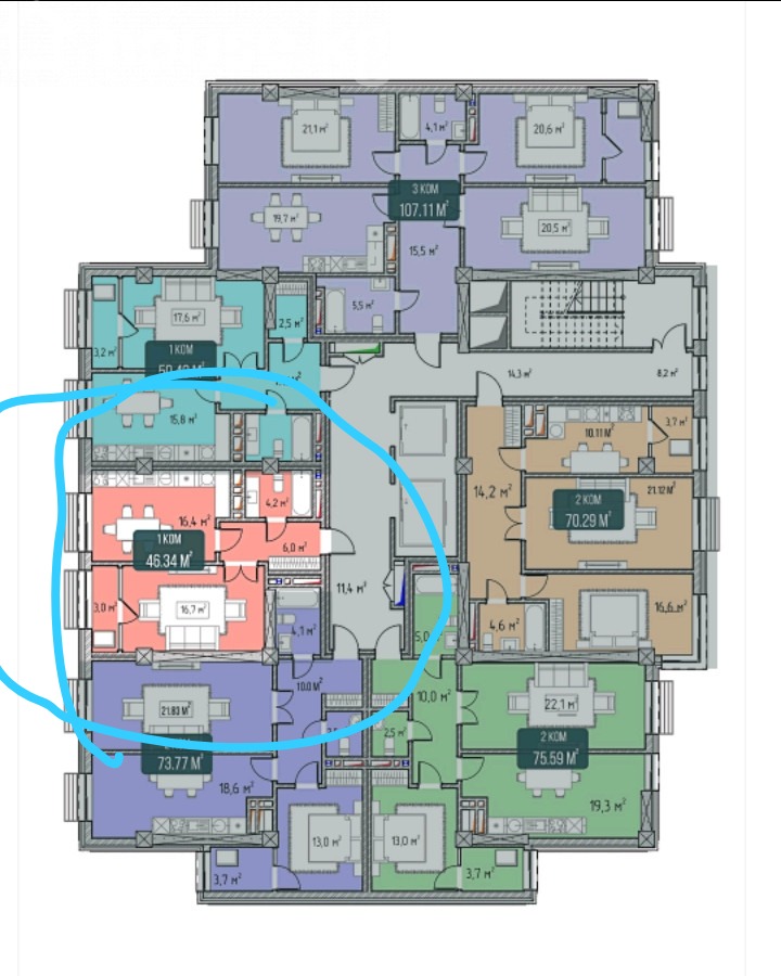 Площадь: 46 м²