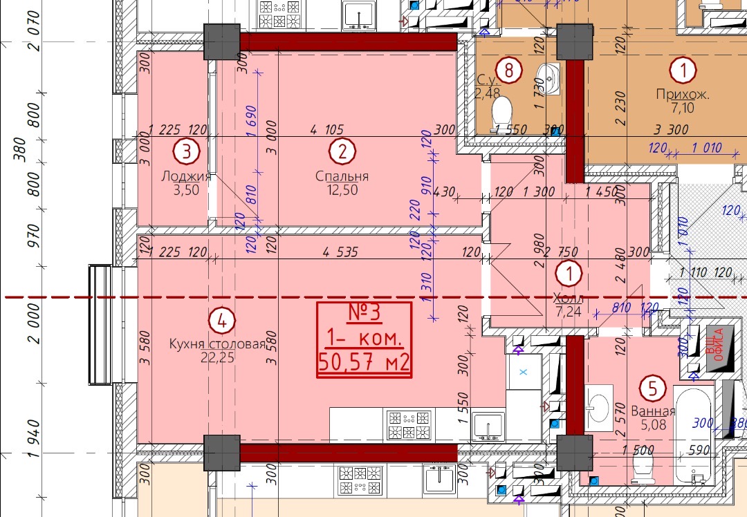 📐 Площадь: 50.57 м²