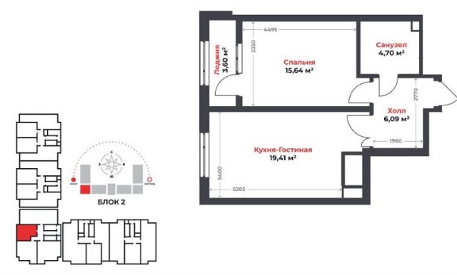 Комнат: 2