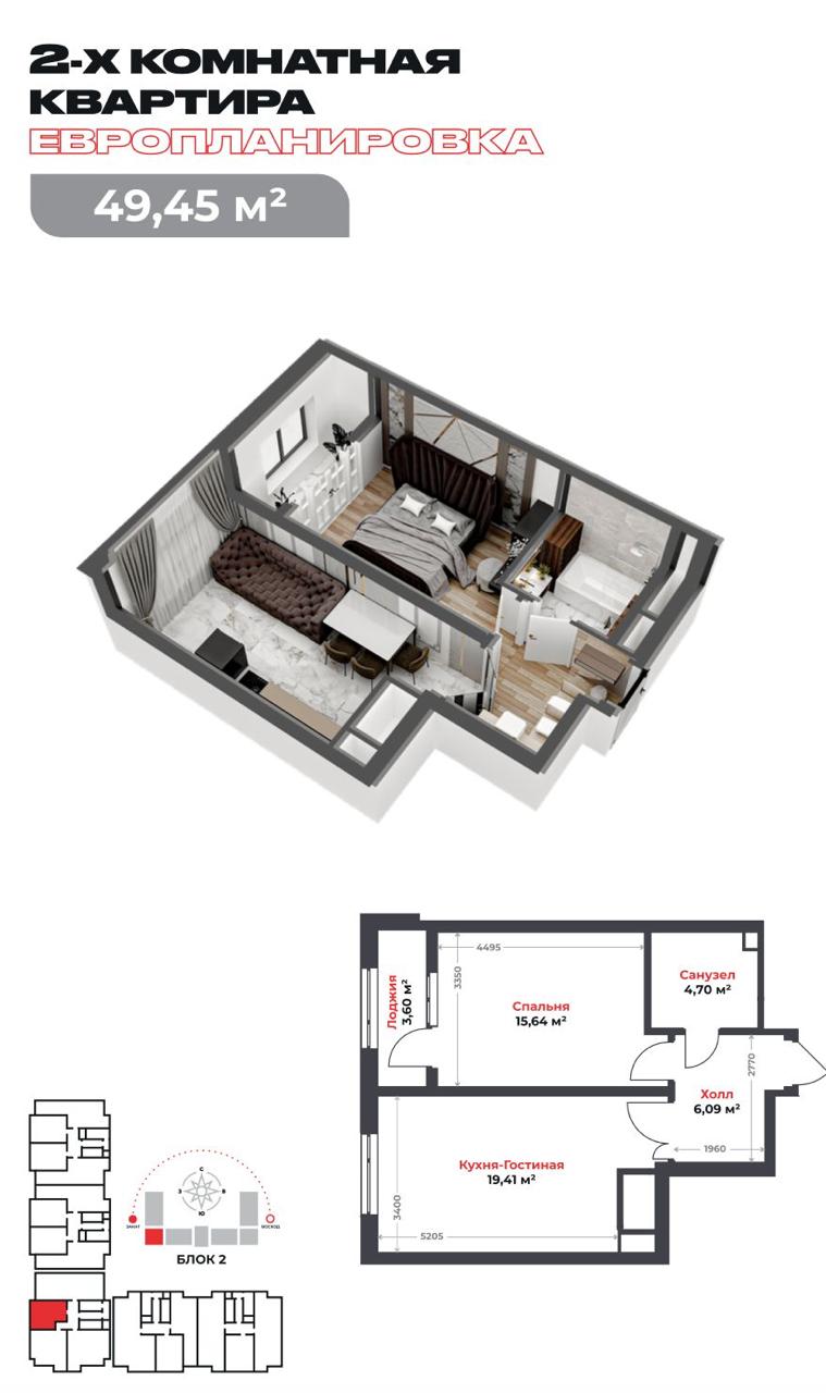 🔹Площадь: 49,45м2