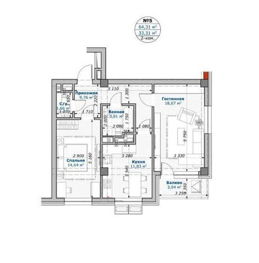Комнат: 2