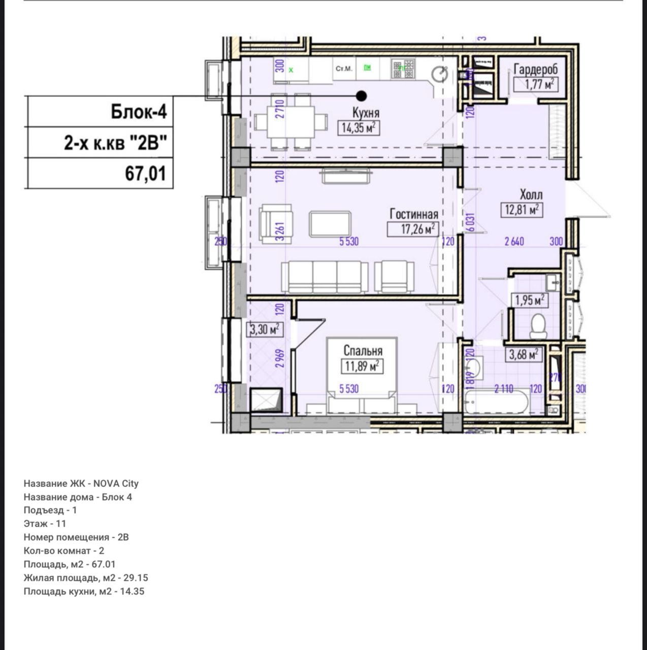 Площадь: 67,01 м²