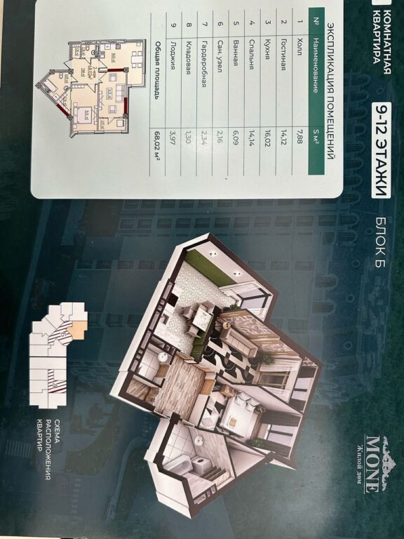 СРОЧНО! Продаётся 2-комнатная квартира в ЖК «МОНЕ» — 68 м², 11/13 этаж, ПСО
