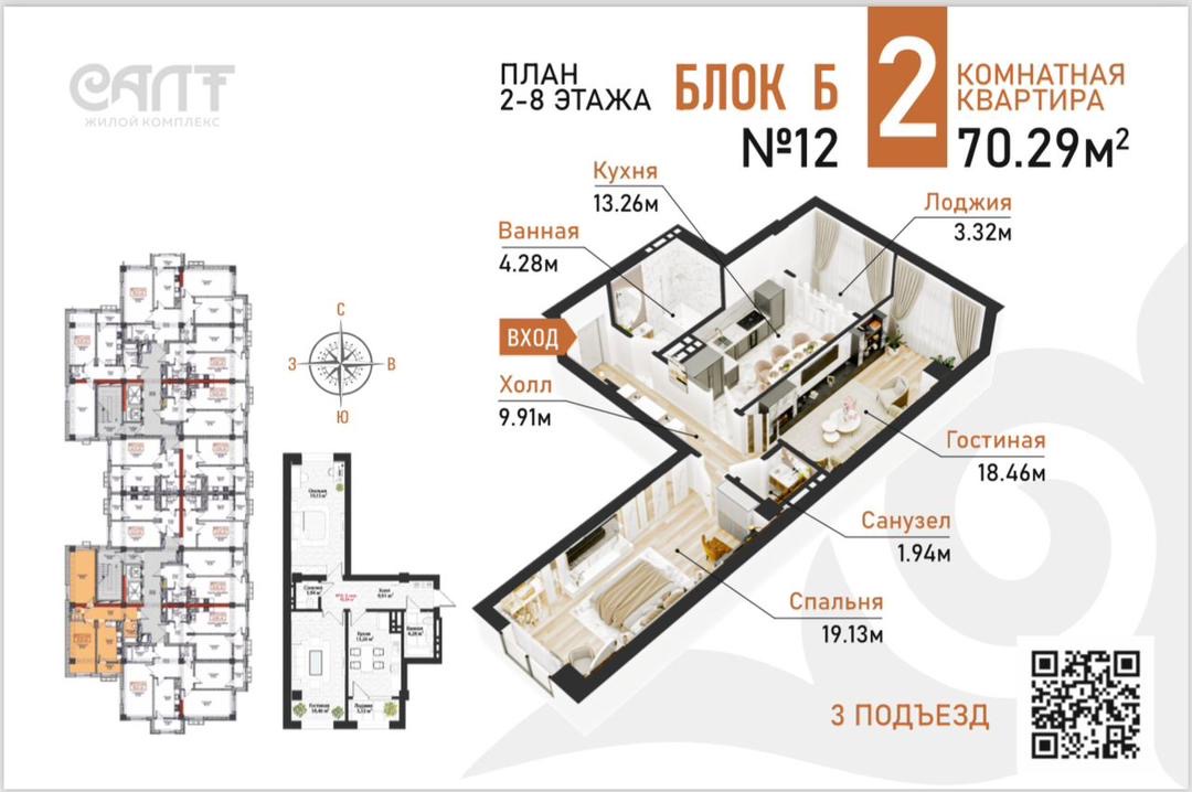 🏢 8 этаж | 📐 70,29 м²