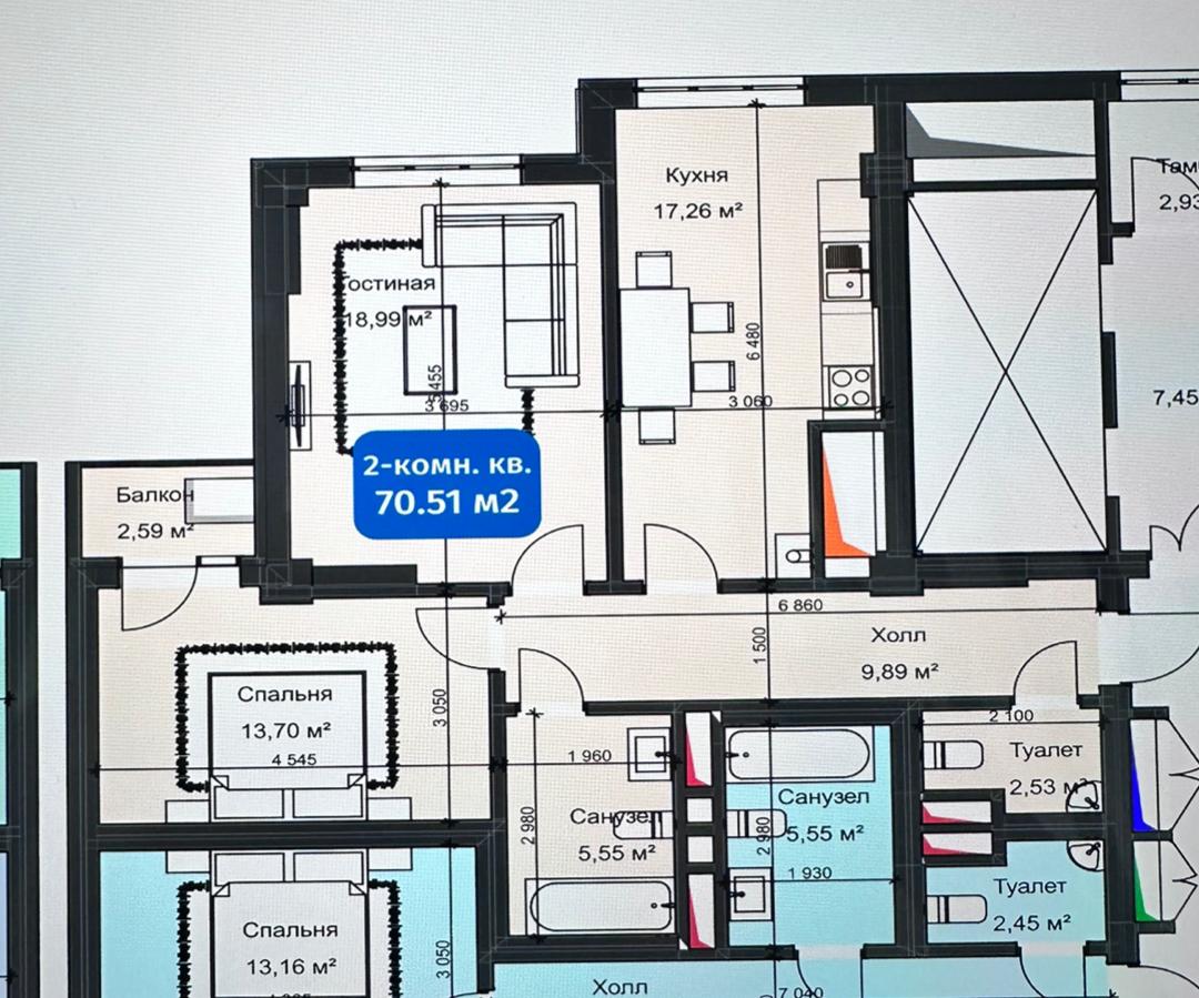 • Площадь: 70.51 м²