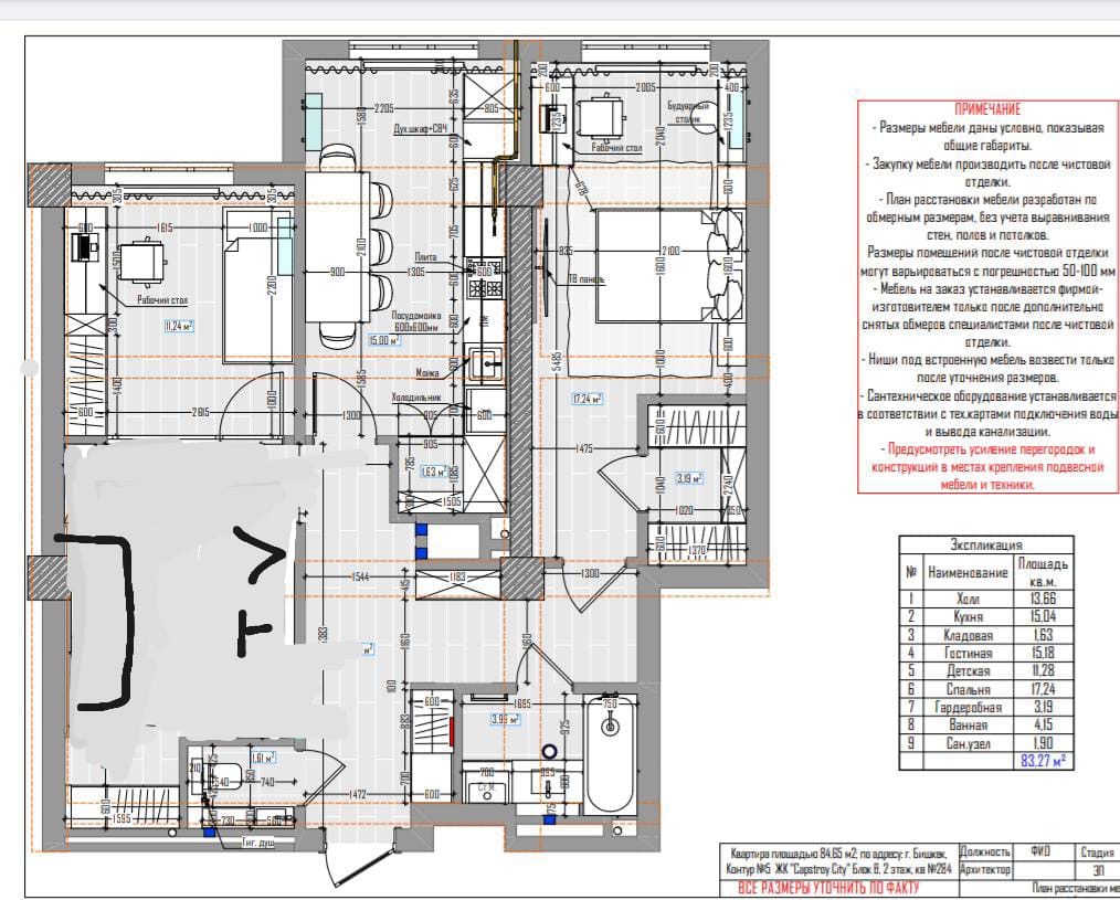 — Просторная квартира 82 м² по документам (фактически 84 м²)