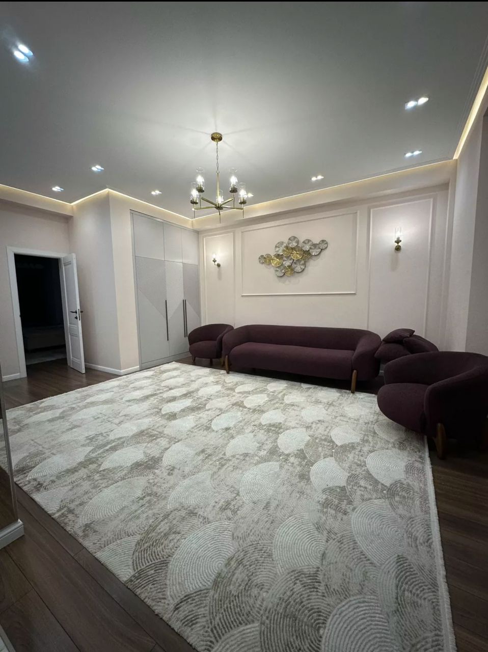 Высота потолков 3,25 метра, вся мебель встроенная из качественных и дорогих материалов.