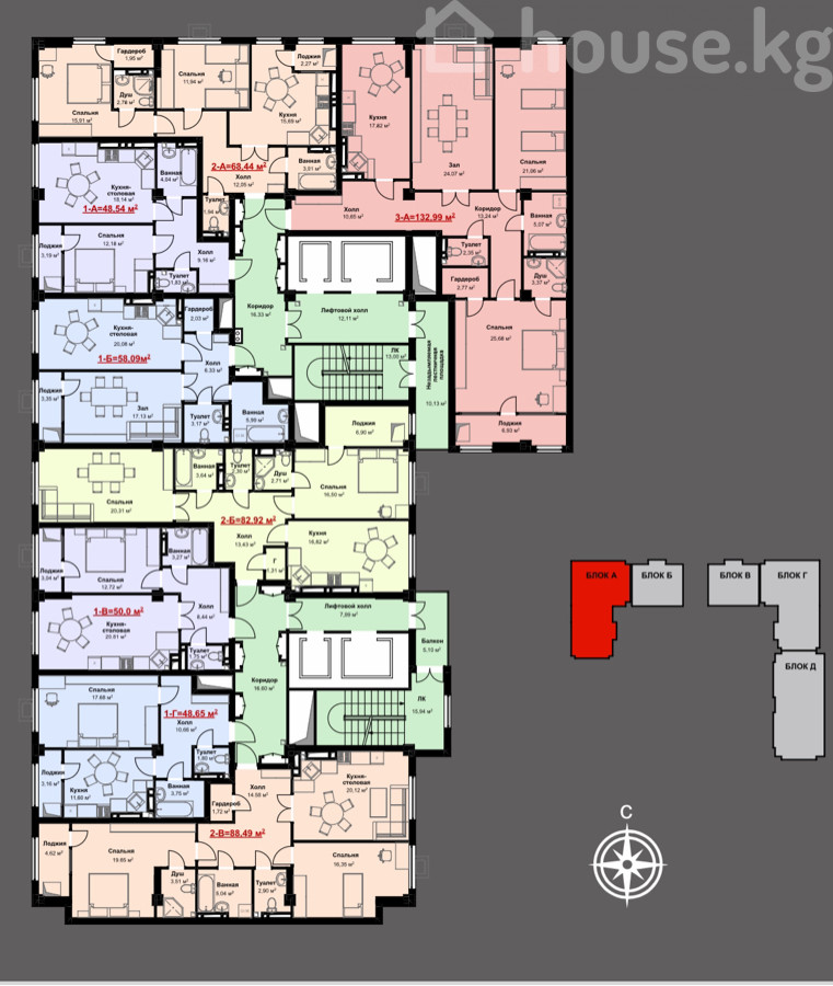 - Площадь 132.9 м2 , А блок