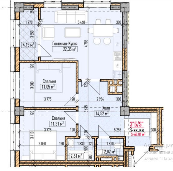 Размер объекта: 68.01 м2