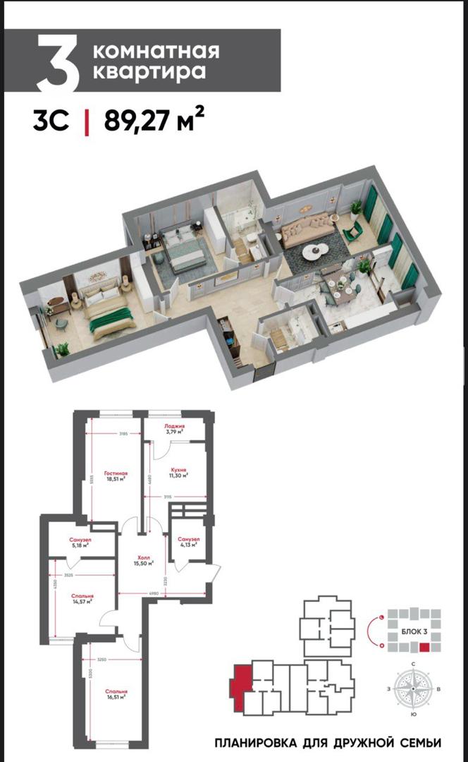 🔹Площадь: 89.27м2