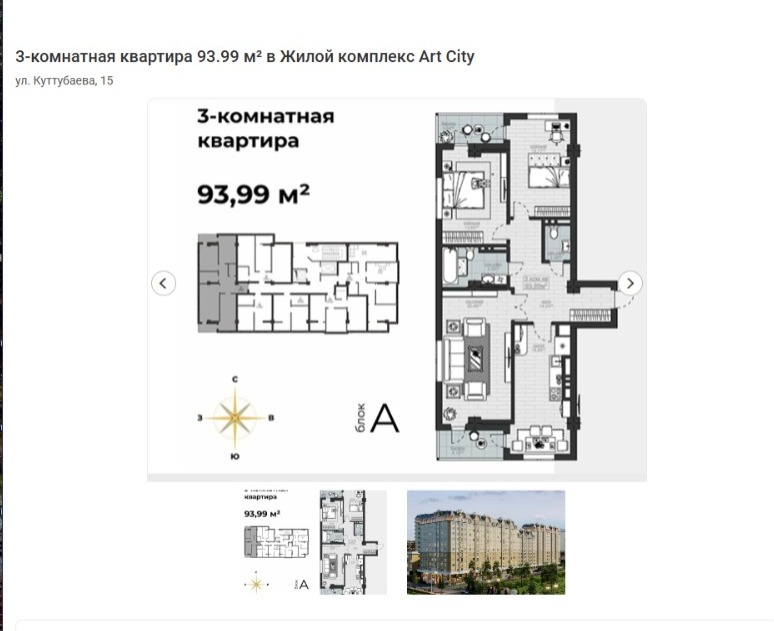 Продается 3-комнатная квартира в ЖК «Art City» (район Асанбай)