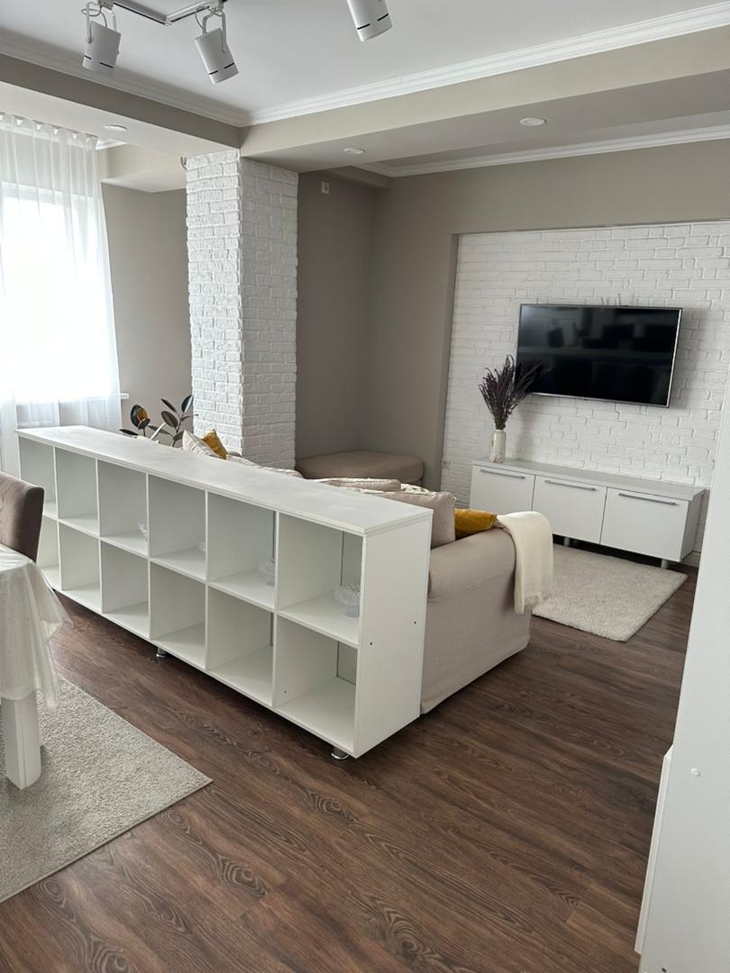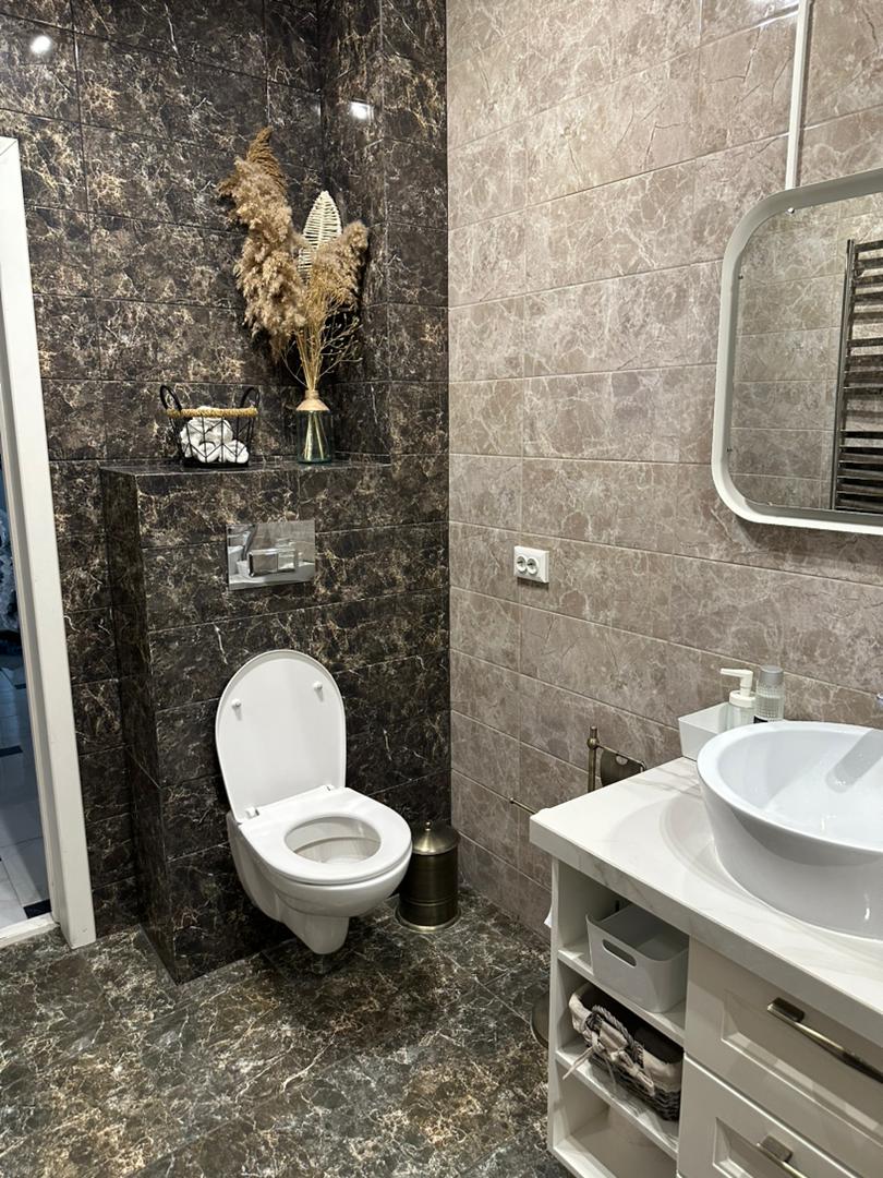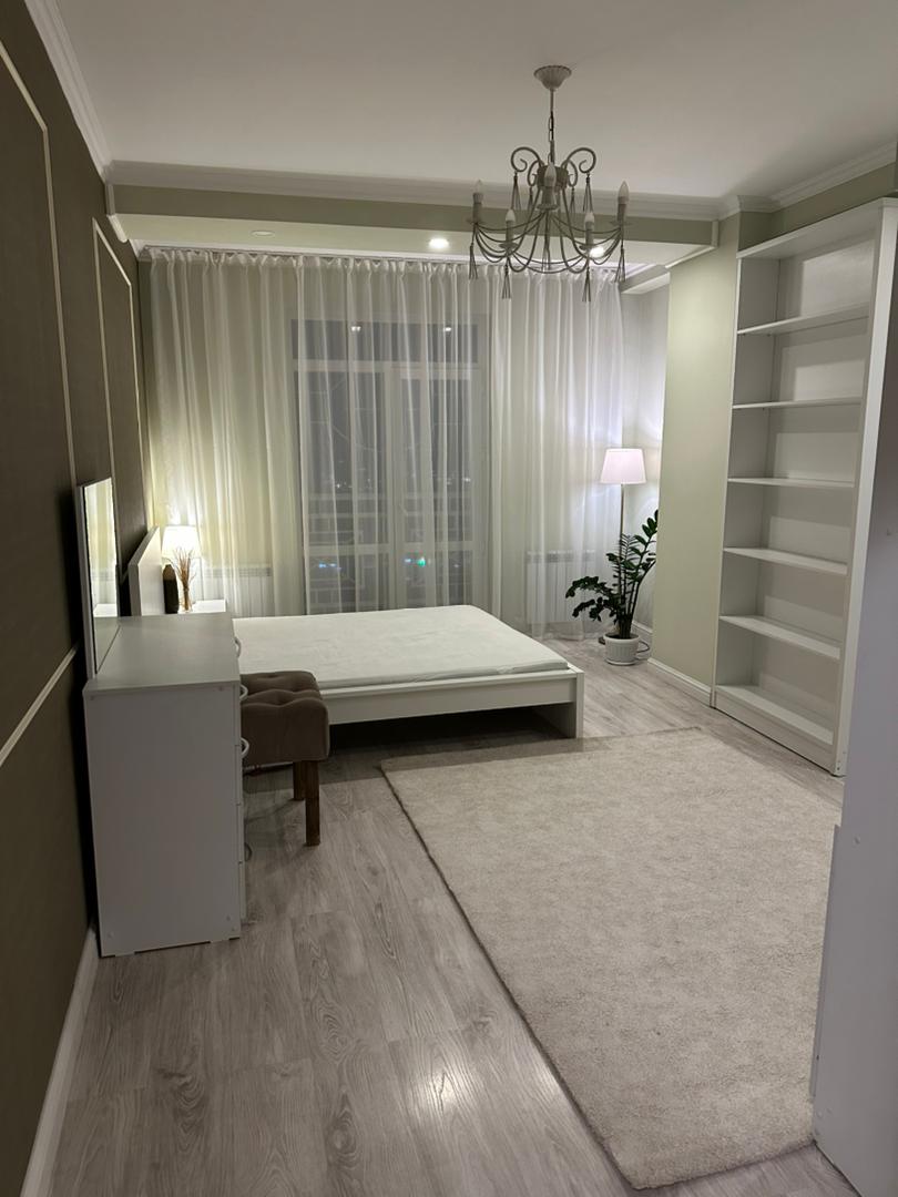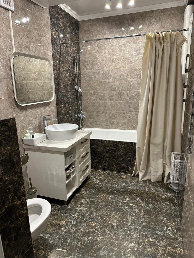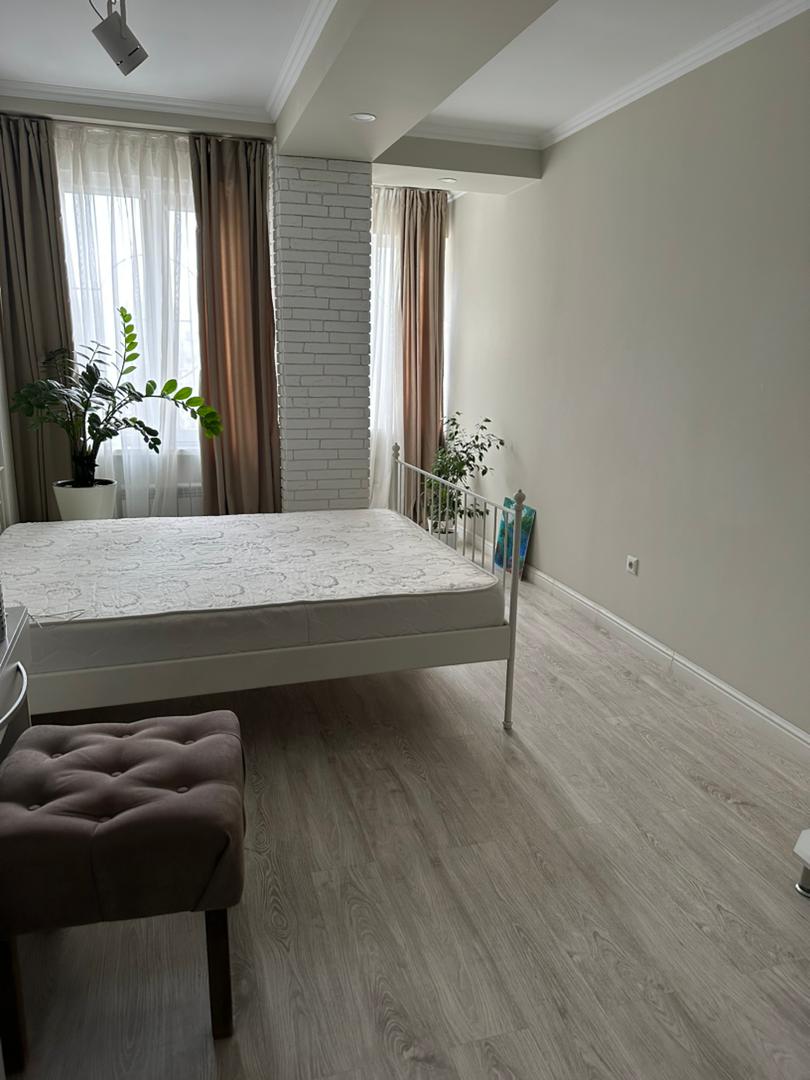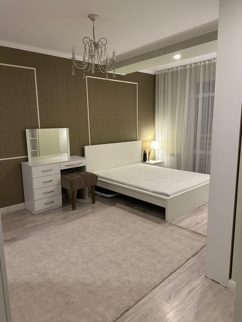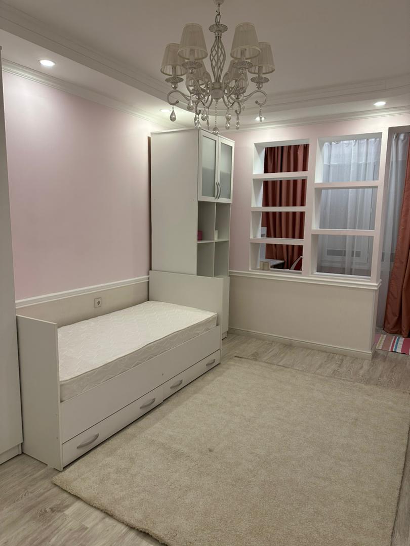 Три изолированные спальни, кухня-гостиная, два санузла, много встроенных мест хранения. Дом кирпично-монолитный, закрытая территория, видеонаблюдение, 2 лифта, детская площадка, своя парковка. Отличное расположение в 7 микрорайоне — рядом Космопарк, школы, детсады, рынок Ортосай, поликлиника и остановки.