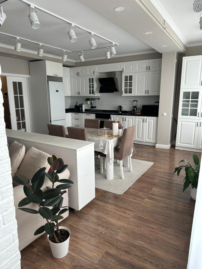 Продается просторная 4-комнатная квартира 133 м² в элитном доме 2018 года постройки, 12/12 этаж, с новым дизайнерским ремонтом в стиле светлой сканди-неоклассики. Квартира полностью меблирована, оснащена новой бытовой техникой (в т.ч. Bosch), качественной сантехникой Grohe, имеет панорамный вид на горы.