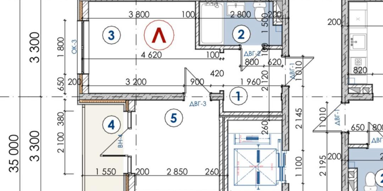 Элитка, 1 ком, 32 м2, этаж 2/4, Сост: Строящийся ПСО