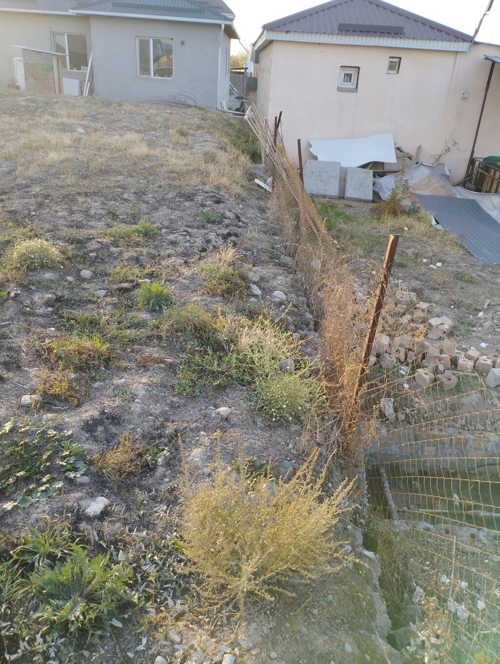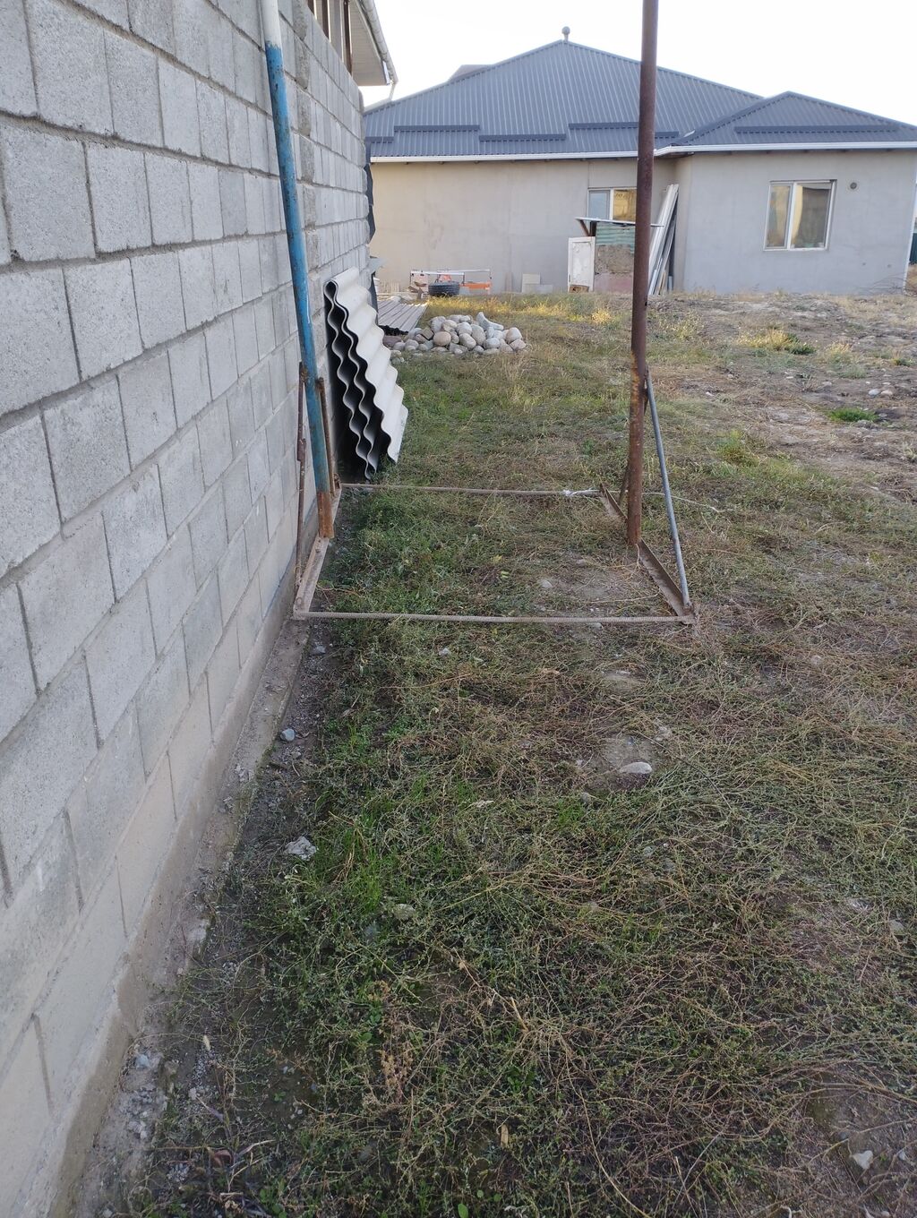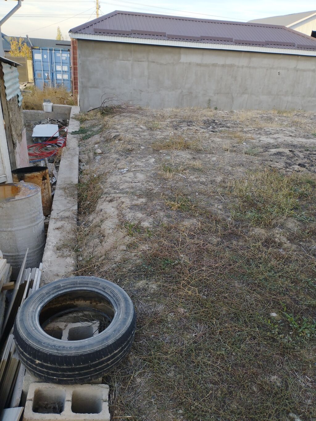 На участке: бетонные блоки/лоты — можно использовать под фундамент или ливнестоки