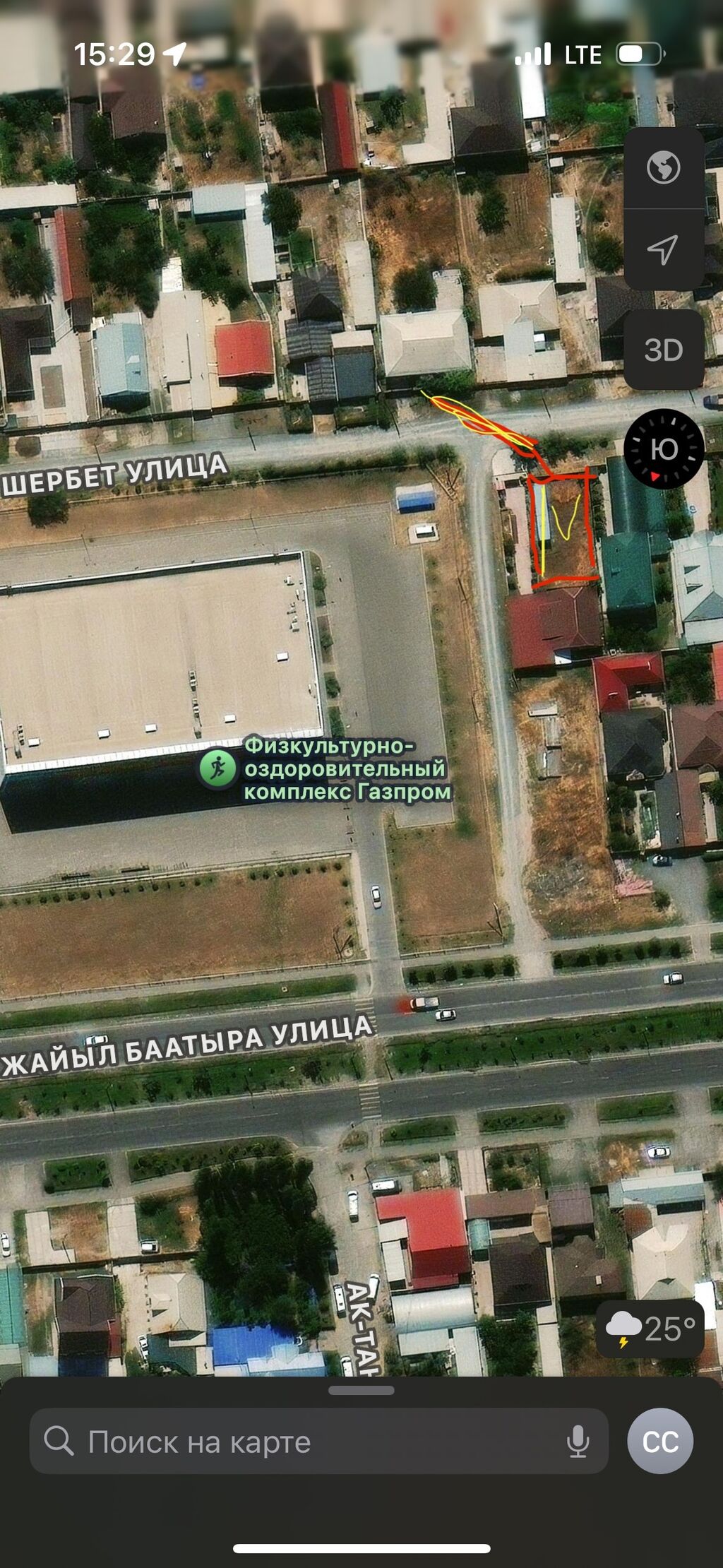 📍 Участок расположен на второй линии от магистрали, по улице Шербет — отличное сочетание удобства и уединённости. Рядом спортивный комплекс Газпром и Сумбуль.