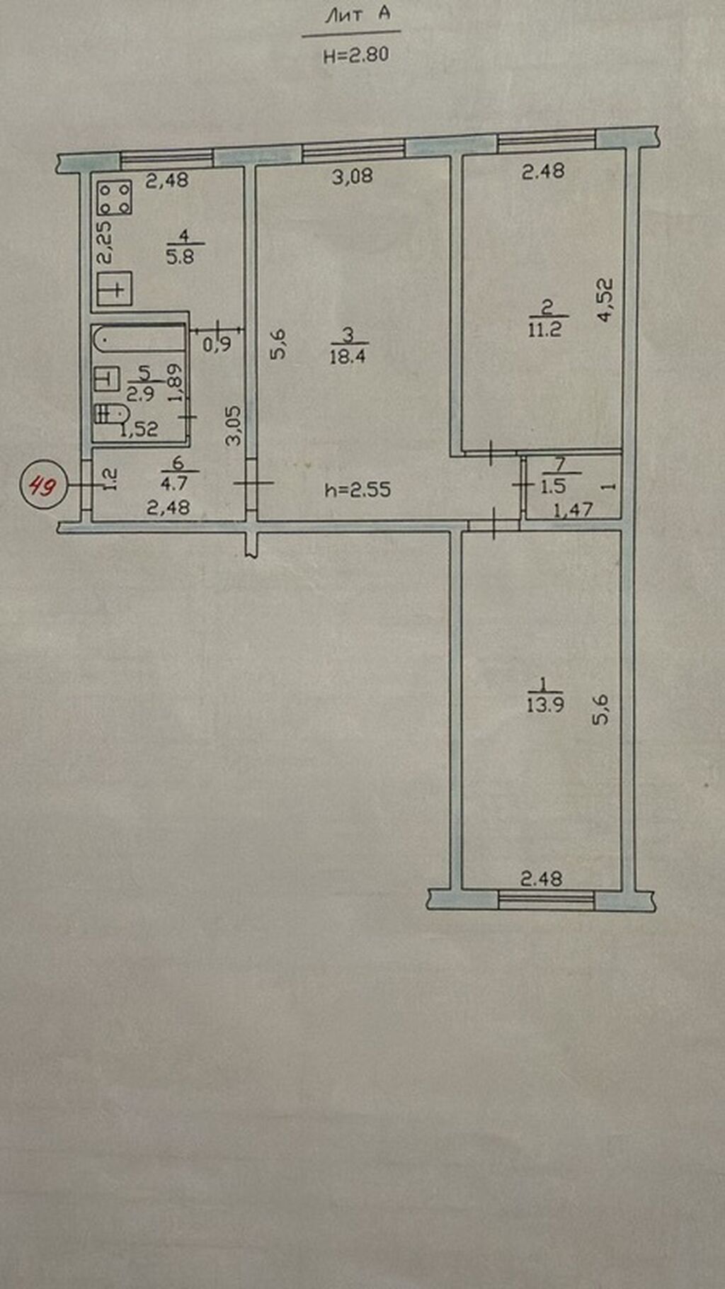 - Кухня 5,8 м²