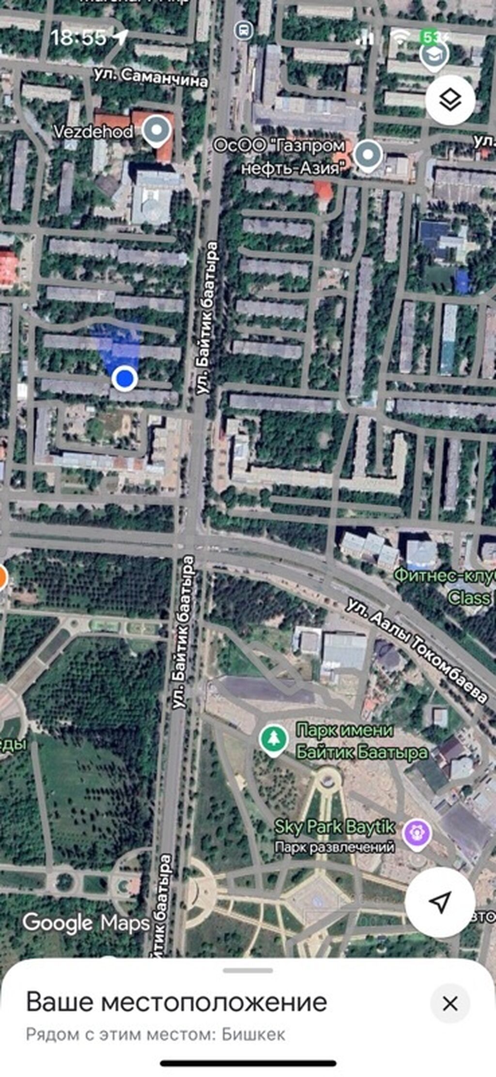 - Адрес на картах: 10-й микрорайон, 1; рядом ул. Байтiк Баатыра, проспект Абсамата Масалиева