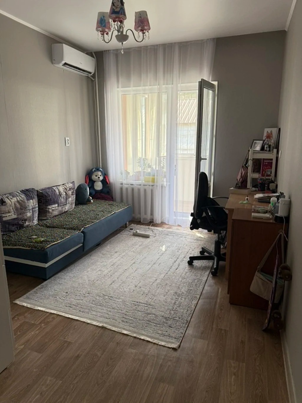Вторая комната с рабочей зоной, кондиционером и выходом на застеклённый балкон