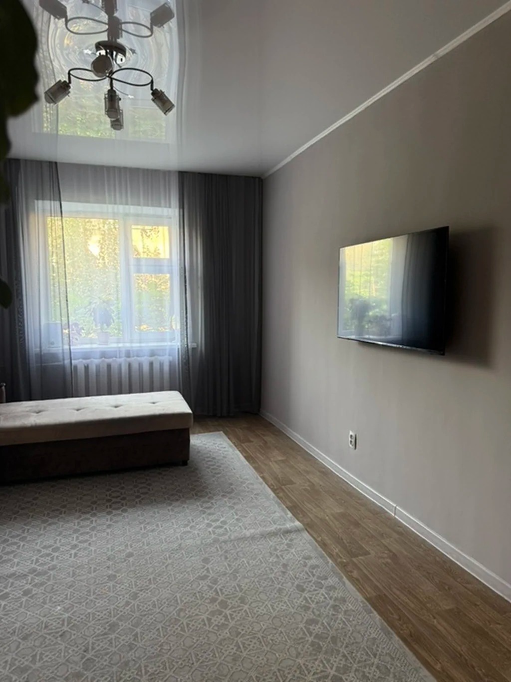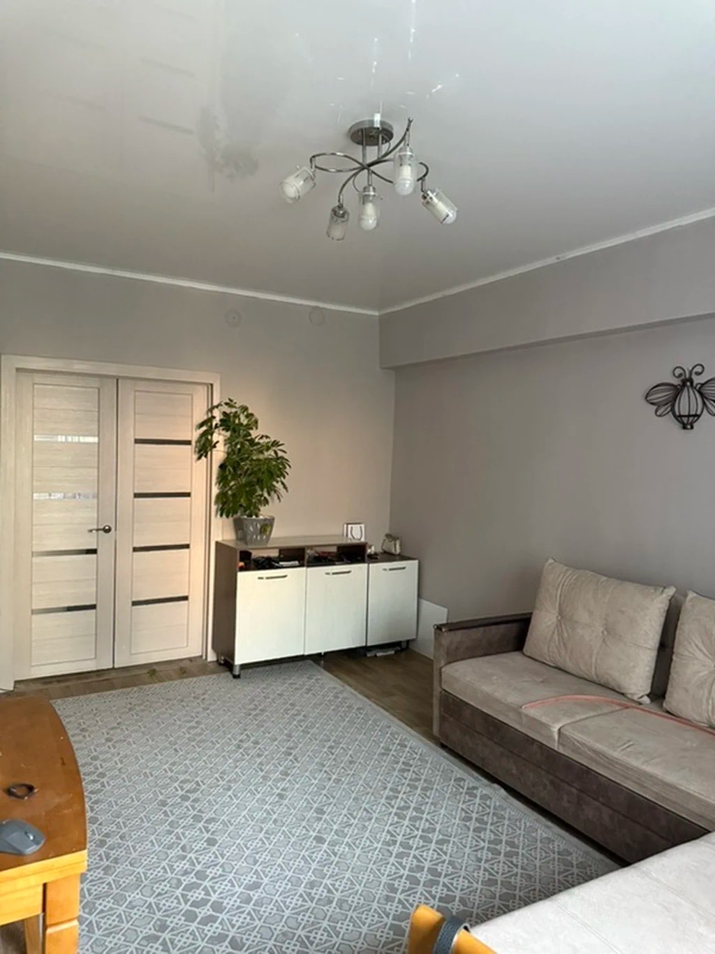 Гостиная с ТВ-панелью и двустворчатыми дверями